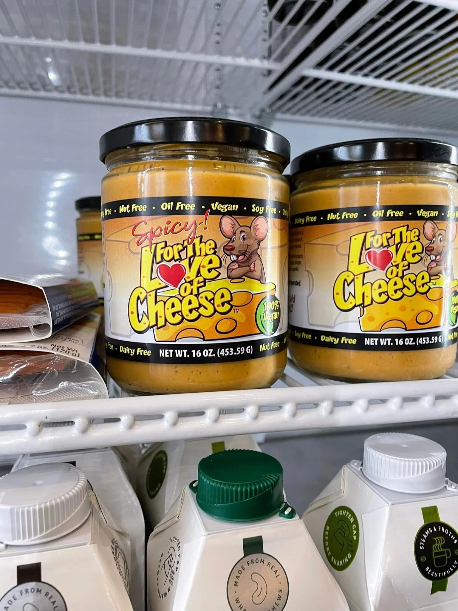 While you’re there, swing by the café cooler and grab a jar of For The Love Of Cheese! Our crave-worthy, dairy-free cheese alternative is made without dairy, oil, nuts, or soy—just pure, plant-powered goodness!